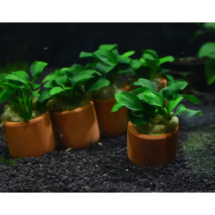 Simply place the terracotta pot anywhere in your aquariumโno planting or special substrate needed. Ensure the rhizome stays above the potting medium to prevent rot. Remove any old or damaged leaves as needed to keep the plant healthy.