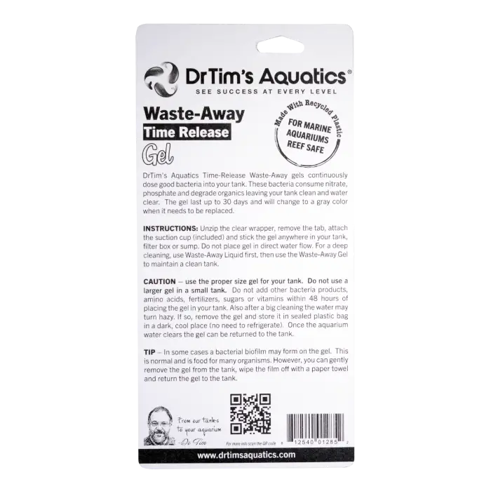 Dr. Timโs Waste-Away Gel (Freshwater) uses beneficial bacteria to break down organic waste and sludge. Helps reduce detritus and keep freshwater aquariums cleaner.