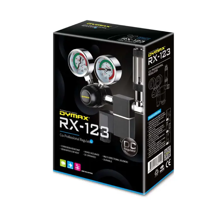 DYMAX PROFESSIONAL REGULATOR RX-123 is a high‑precision CO₂ regulator designed for planted aquariums, delivering stable, consistent CO₂ flow for reliable plant growth. DYMAX PROFESSIONAL REGULATOR RX-123 features a multi‑directional, low‑heat DC solenoid, corrosion‑resistant body and included bubble counter for easy, professional‑grade CO₂ control.