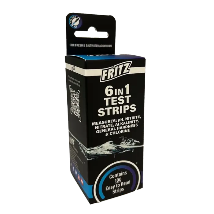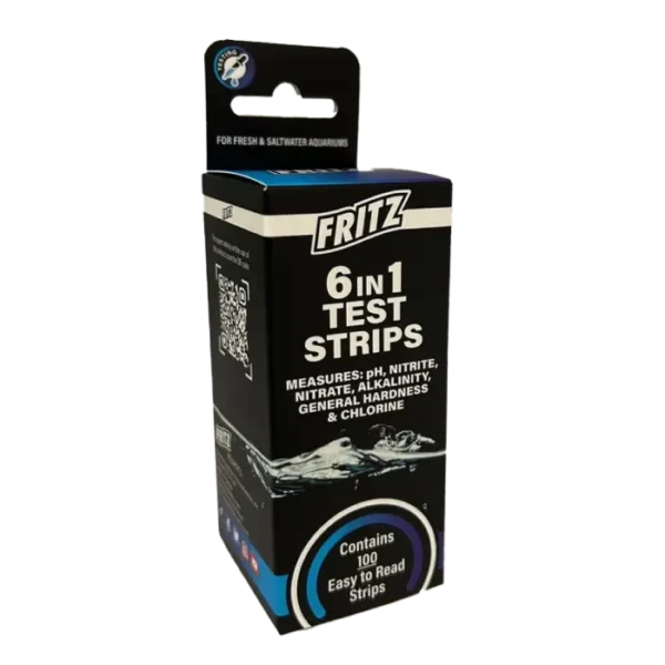 Fritz 6 in 1 Test Strips 100pk make it quick and easy to monitor your aquariumโs key water parameters. Each strip tests pH, nitrite, nitrate, alkalinity, general hardness and chlorine in seconds, and this Fritz 6 in 1 Test Strips 100pk tub gives you 100 easyโtoโread strips for regular testing in both fresh and saltwater aquariums.