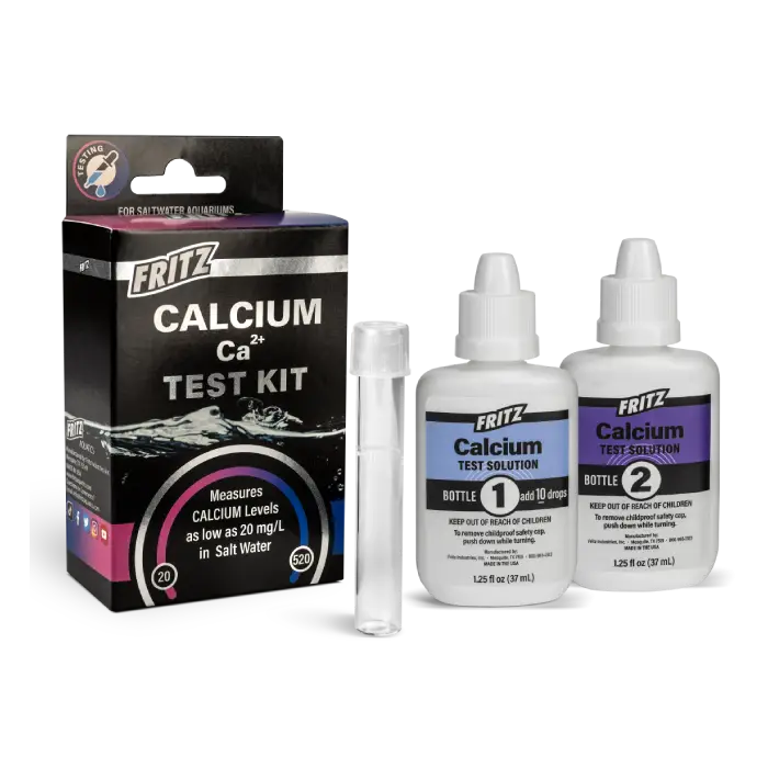 - Holding the bottle vertically, Add Calcium Test Solution #2ย drop by drop into the test tube , shaking gently betweenย and counting drops. Stop when the solution changes fromย pink to blue. As the blue endpoint is approached, color willย change from pink to purple before changing to blue. Afterย purple color forms, only 1-2 more drops should be required toย reach the blue endpoint. Calcium level is # of drops x 20. Useย chart to determine calcium level.
