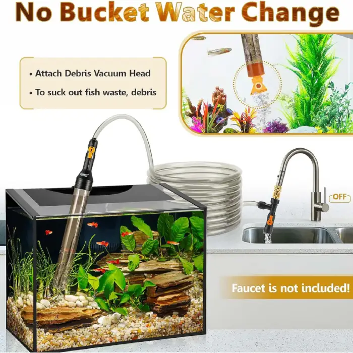 Hygger Bucket-Free Fish Tank Water Changer Kit makes your routine aquarium maintenance work a breeze, saving lots of time and energy on cleaning the mess caused by carrying buckets back and forth.