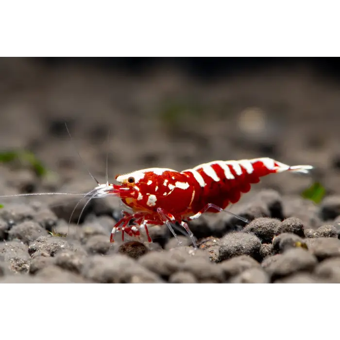 Red Galaxy Fishbone Shrimpโrare, vibrant freshwater shrimp for planted tanks. Striking red and white patterns, peaceful, and perfect for nano aquariums!