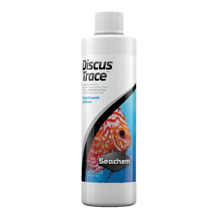 Discus Trace™ supplies a broad range of trace elements demonstrated* to be necessary for proper fish health and growth. Unlike terrestrial animals, fish obtain nutrients from both their food and environment. Trace elements are normally depleted by utilization, oxidation and precipitation, thus it is important to restore them on a regular basis. Discus Trace™ contains only those elements actually demonstrated* to be required by fish.