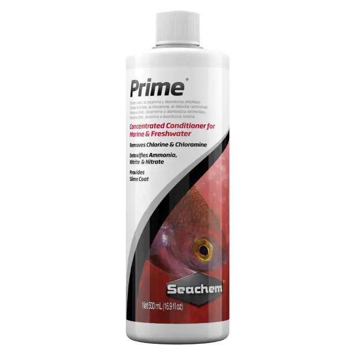 Nearly all pet aquatics companies manufacture a product that removes chlorine. None of those, however, can compare in quality, concentration, or effectiveness to Seachem’s flagship product: Prime®. Prime® is the complete and concentrated conditioner for both fresh and saltwater. Prime® removes chlorine, chloramine and detoxifies ammonia, nitrite, and nitrate. It is non-acidic and will not impact pH. A further bonus for the reef hobbyist—Prime® will not over-activate skimmers.