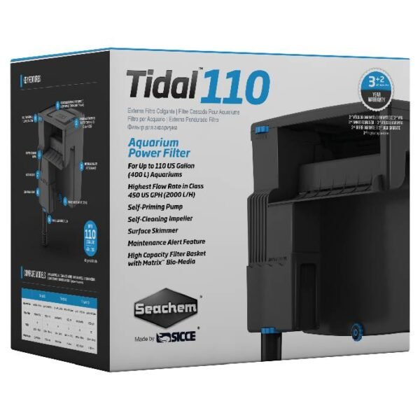 The filter basket has a huge capacity to hold filtration media of your choice in the configuration of your choice. All Tidalโข Filters come with Seachem’s Matrixโข bio-media to get you started.