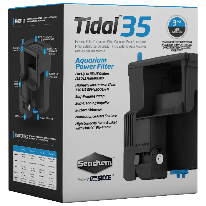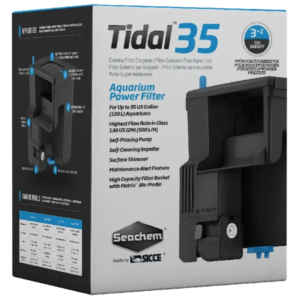 The filter basket has a huge capacity to hold filtration media of your choice in the configuration of your choice. All Tidalโข Filters come with Seachem’s Matrixโข bio-media to get you started.