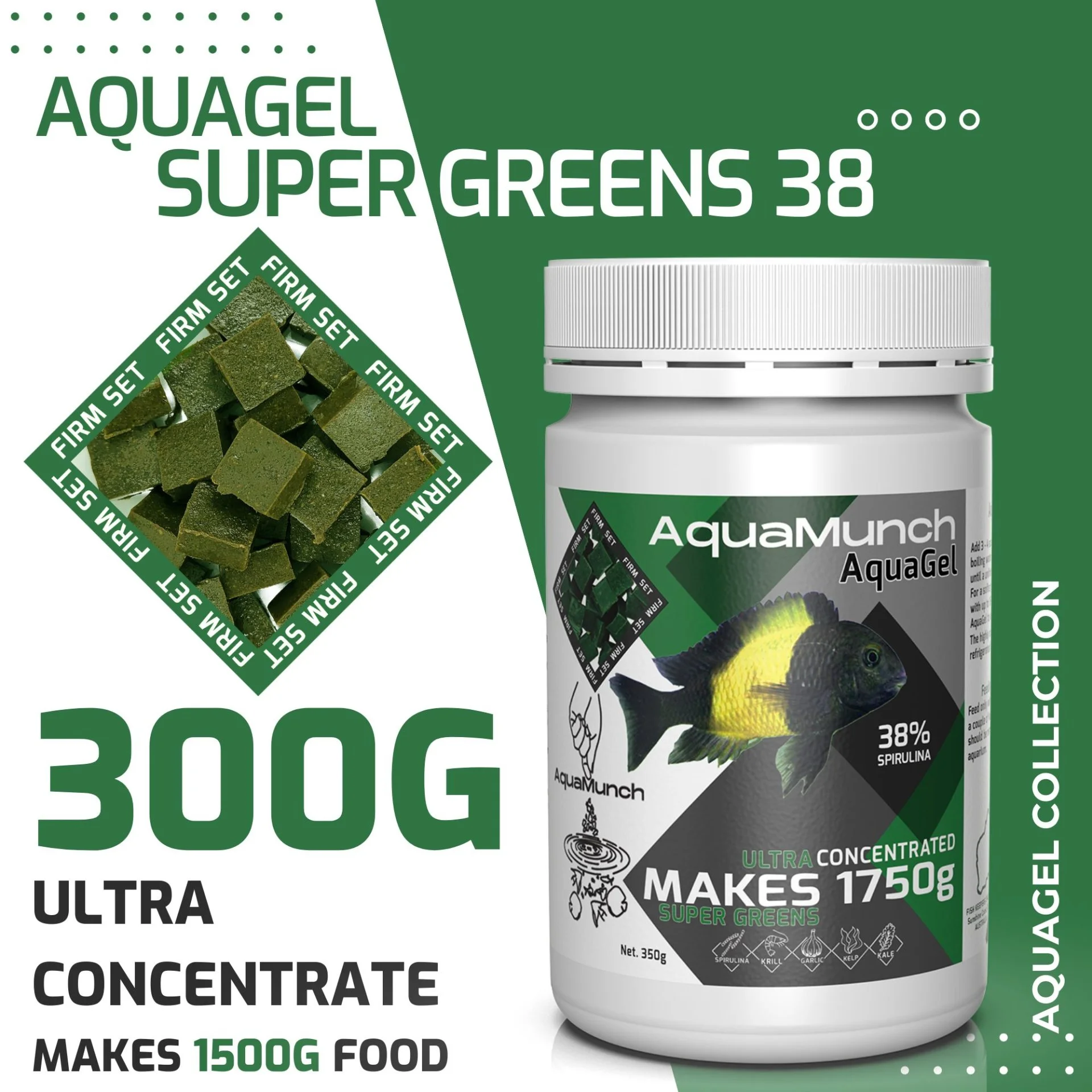 Intro:ย Dive intoย AquaMunch AquaGel Super Greens, food made for aquarium fish that love spirulina.